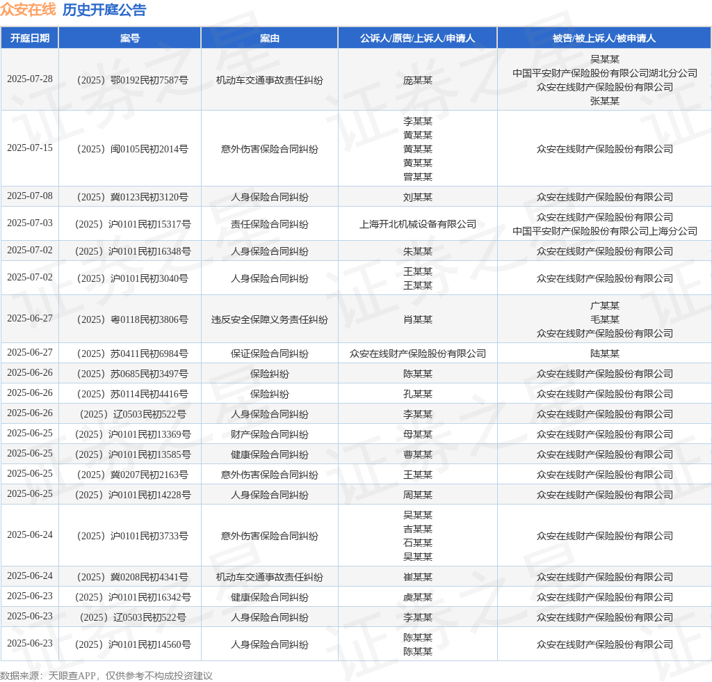 本站消息2025年配资一览表最新2025年配资一览表最新,根据天眼查APP显示,近日公布了一则众安在线财产保险股份有限公司作为被告/被上诉人的开庭公告,详细内容如下:
